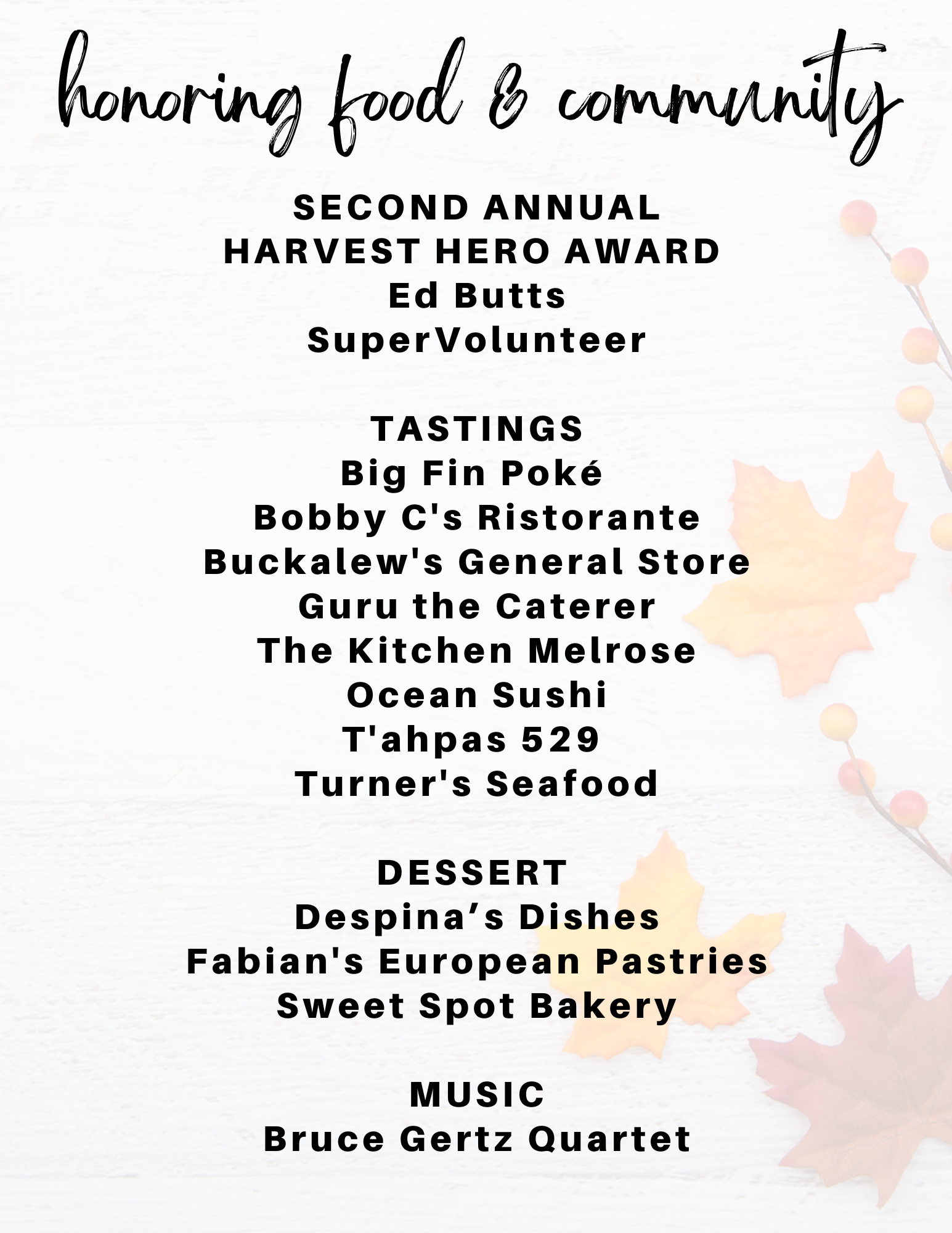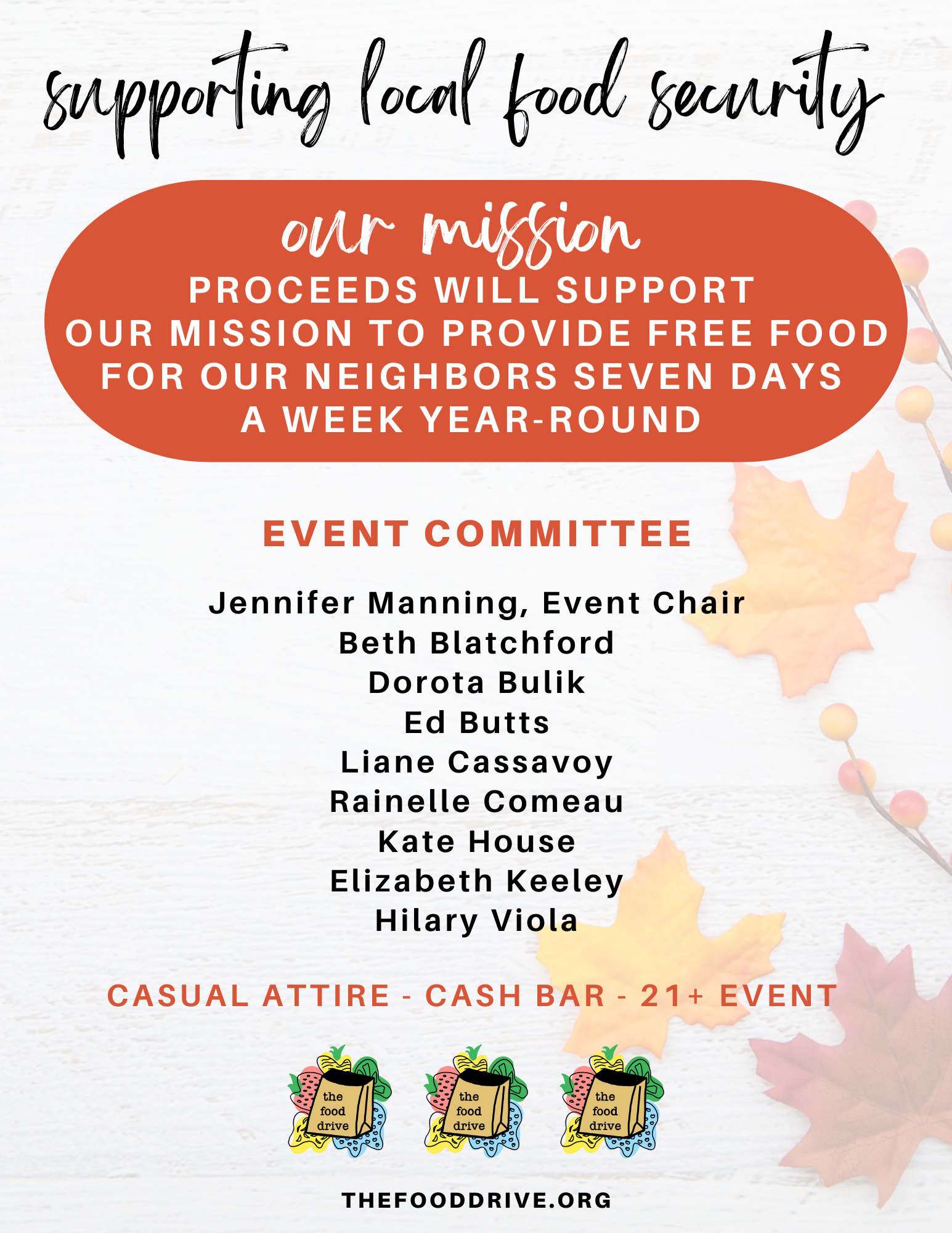 Funds raised at Harvest are vital for The Food Drive. This year’s total ($116,000) enables us to continue our work to feed our neighbors at a time when so many people are facing food insecurity. We’re incredibly grateful to our community for sustaining our mission.